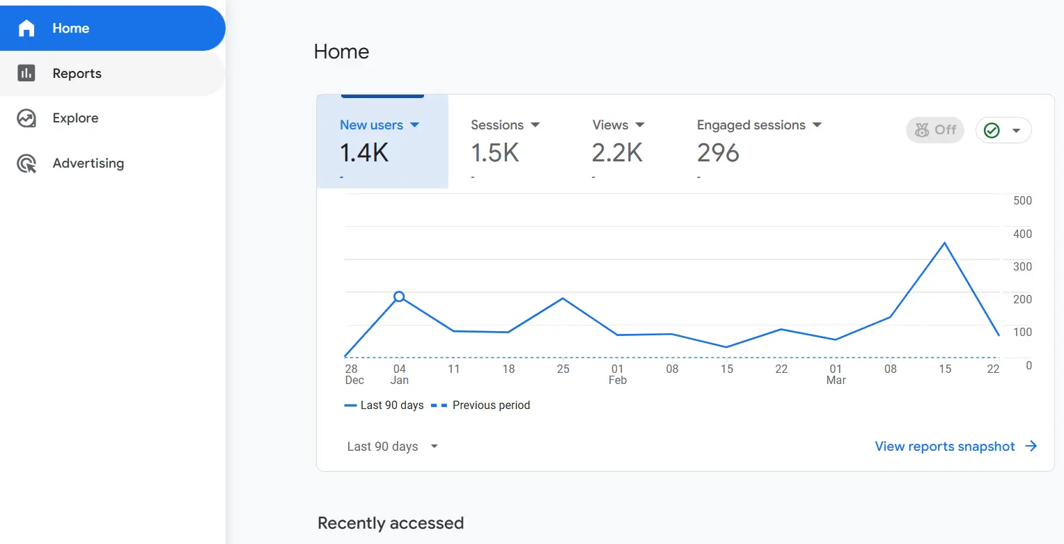 If you want the page-level view, the Landing page report is also helpful. The Landing page report shows the first page a visitor lands on and how many people land on each page. That makes it useful for checking which pages are actually attracting organic search visitors.